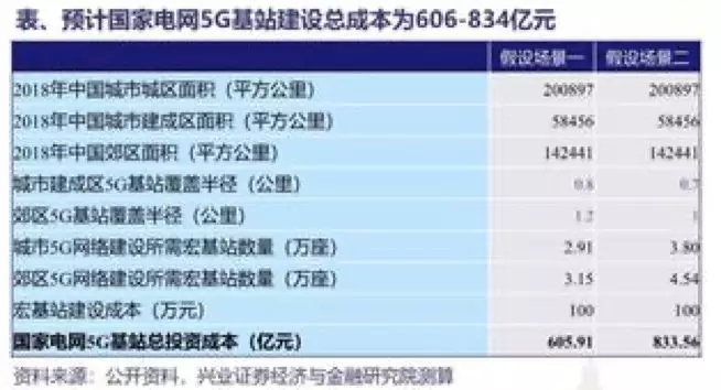 假设国家电网的5G网络率先覆盖城市(包括主城区、郊区),取城市宏基站平均覆盖半径为700-800米、郊区宏基站平均覆盖半径为1000-1200米,那么单个宏基站的平均建设成本为100万元。