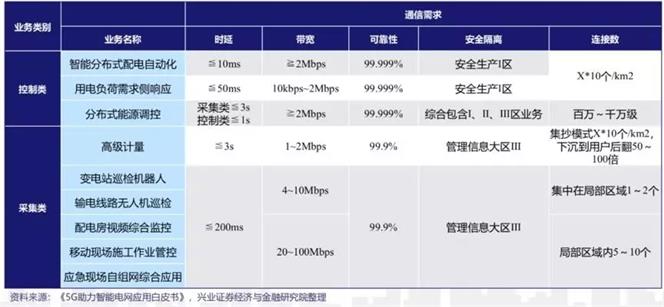 比如,配电自动化要求网络时延小于10ms,可靠性高达5个9,这需要5G uRLLC场景;远程视频监控尽管对时延和可靠性要求不高,但上传速率要求20-100Mbps,这需要具备上行大带宽能力的eMBB场景;而智能抄表等业务需要可支持大规模连接的mMTC场景。显然,智能电网需要具备网络切片、边缘计算能力,以及具备大带宽、低时延能力的5G网络来支撑。