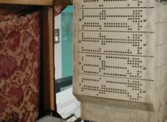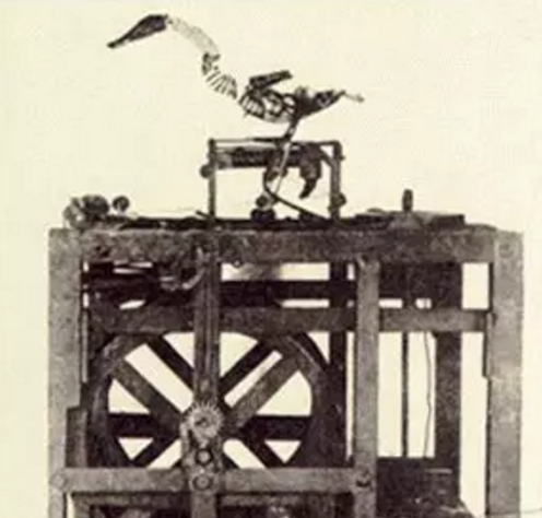 上图:De Vaucanson的“消化”鸭;下图:Jacquard织布机,由消化鸭的发明者用穿孔卡片编程。