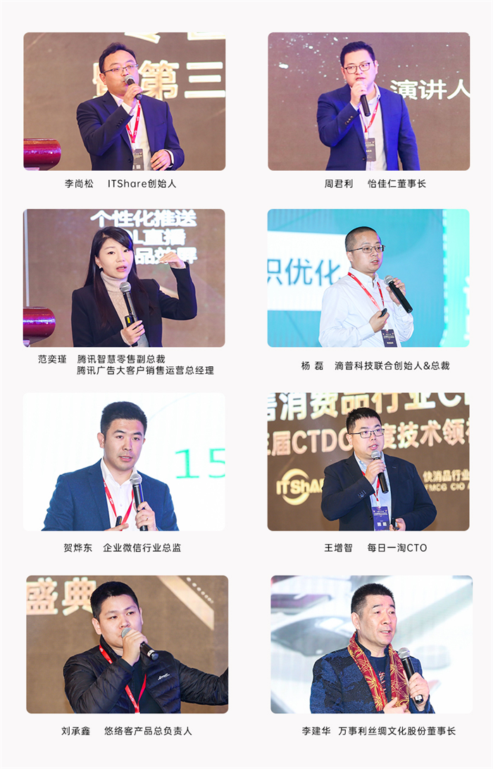 首位演讲分享嘉宾-怡佳仁董事长周君利为我们带来演讲题目是《在新零售浪潮下的发展创新之路》,周总通过多年来工作经历和相关项目结合,给我们介绍了怡佳仁新品牌“卡塔利亚”创建运营,启发我们对新模式的创新以及思考。企业微信行业总监贺烨东先生通过向大家介绍企业微信在整个腾讯以及微信生态它的定位,以及从打通整个快消零售行业长链条、门店的管理、消费者管理等三个方面向我们解析了企业微信如何助力快消零售新增长。腾讯智慧零售副总裁、腾讯广告大客户销售运营总经理范奕瑾讲述了整体消费者从用户端对于小程序生态、包括小程序生态所带来的连接、以及底层的IT技术、企业数字化发生了的转换现象,线下场景数字化、以小程序生态为核心的私域流量池等几个方面,向我们解读了在过去一年里面,腾讯在智慧连接,通过零售的整体新业务驱动增长的贡献和成就。