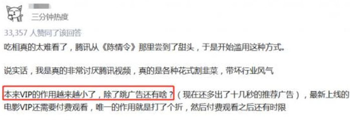 而优爱腾的会员由于是正版付费的替代品,会员权益比较单薄,导致消费者的心理账户出现失衡,很容易产生冲这个会员不如去买盗版的念头。在庆余年事件之后,大量的观众反馈“VIP的作用越来越小了,除了跳广告的功能还有啥?”
