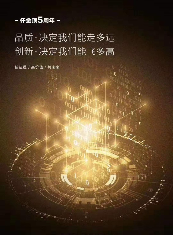 经过多年沉淀、蜕变,仟金顶的服务与能力备受伙伴及行业肯定。在奋勇前进、砥砺前行的道路上,初心与使命是仟金顶的DNA,无论环境如何变化,仟金顶的使命坚持不会变,对初心的坚守不会变。以科技驱动企业发展的理念,激励着仟金顶一次次的产品创新、服务升级,过去5年,仟金顶因为坚持而与众不同,未来5年、10年,仟金顶一定、也必须因为坚持“赋能小微企业,推动产业发展”而与众不同。