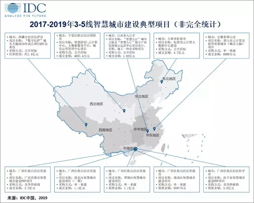 近年来,3-5线城市的智慧城市建设项目数量和投资额节节攀升,IDC通过研究部分典型项目,发现有如下特点: