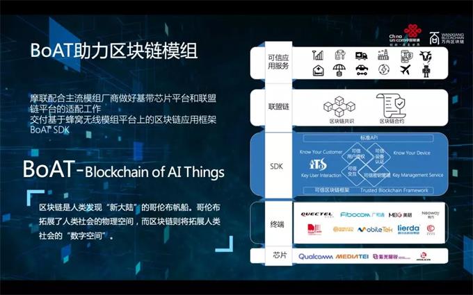 摩联科技在这次发布中起到了穿针引线的作用,其推出的区块链应用框架BoAT SDK,与主流模组厂商已经完成了基带芯片和联盟链的适配工作,可以交付于蜂窝无线模组使用。