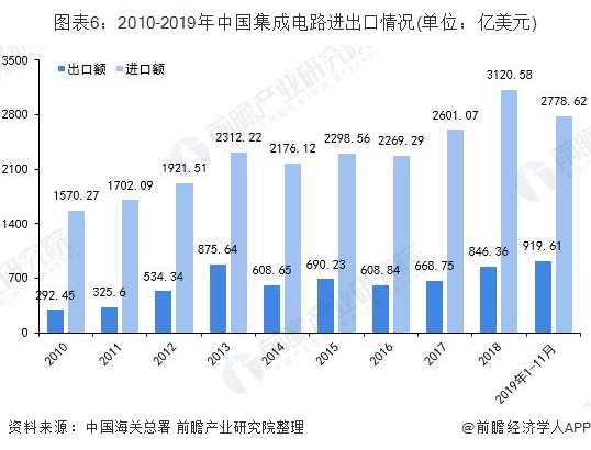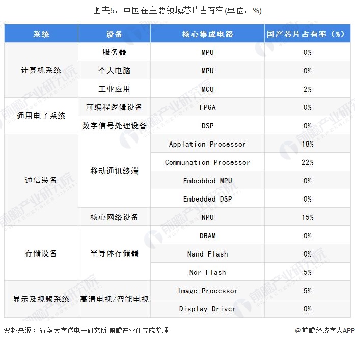 当前我国集成电路市场仍然以国外进口为主,国产化率较低,对外依存度较高。在DRAM、NAND存储器及电脑、服务器CPU等方面国产化率为零。虽然紫光展锐、华为海思等在移动处理器方面已进入全球前列,但是,在个人电脑处理器方面,英特尔垄断了全球市场,国内相关企业有3-5家,但都没有实现商业量产,大多依靠申请科研项目经费和政府补贴维持运转。