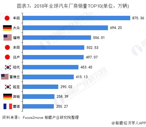 中国是全球最大的汽车市场,2018年汽车产销量达到,蝉联全球第一。但是,由于德国、法国、日本、美国等汽车工业历史悠久,技术领先,中国汽车的自主品牌占全球的市场份额较低。根据Fucos2move统计数据显示,2018年全球汽车厂商销量前十名均为国外企业,无中国品牌。