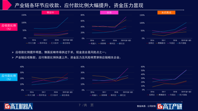 从上市公司前三季度的数据来看,零部件和本体大部分企业的毛利水平都在下降,有的企业已经越过了20%的安全线,系统集成器的毛利水平基本与去年持平。