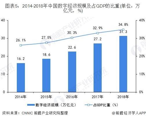 近年来,以先进科技为驱动,在经济发展需求的倒逼之下,数字经济规模增长速度惊人,中国的数字经济发展已经进入了一个赶超争先的阶段。根据中国互联网络信息中心(CNNIC)发布的第44次《中国互联网络发展状况统计报告》,2018年我国数字经济规模达到31.3万亿元,占GDP比重达到34.8%。在此基础上,我国将不断加快新一代人工智能与实体经济的融合,加快发展智能制造。