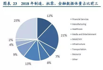 产业数据的迁移和物联网对于产业数据的激发将成为产业互联流量爆发的两大关键动力。从各实业的数据体量结构 看,2018 年数据量占比前三分别为制造业、批发零售、金融服务行业,伴随 C 端移动互联网及 B 端产业互联网更深 层次发展,数据的存储、计算与传输将进一步提升全球数据中心的需求,而工业互联网、互联网电商、金融科技的 数字化发展将是推动 IDC 数据中心应用的主力。