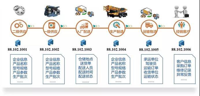 徐工牵头建设的二级节点主要是面向工程机械行业。实际应用中,通过扫描整机二维码获取该整机产品及相关核心零部件的信息;根据信息解析出零部件装配信息,整机装配信息以及物流配送信息,便于供应链管理;可直接填报产品故障信息反馈到相关部门及时跟踪分析,为产品质量改善提供数据支撑。