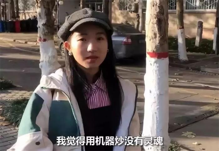 结果,有同学对摄像机说:“标准化的炒菜,操作过程没有灌注厨师的感情,所以没有灵魂。”