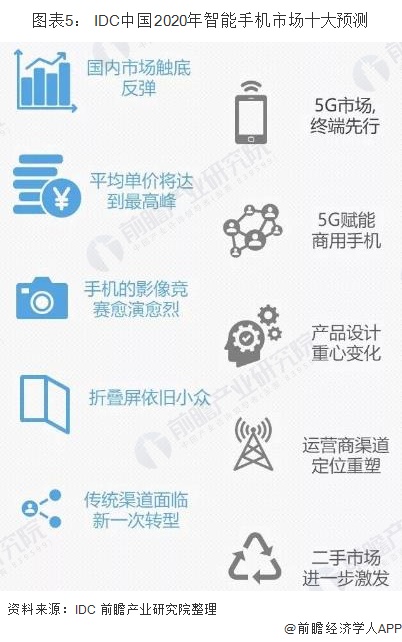 IDC基于5G产业的发展也对中国智能手机市场作出了十大预测。其认为国内智能手机市场将迎来触底反弹,且短期内5G手机的出货量将领先于5G网络的用户。中国智能手机市场或将实现逆风翻盘。