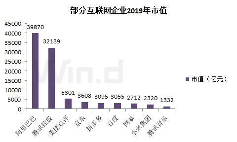 在求流量的背后,实际上可以看出互联网公司激烈的竞争。根据Wind发布的“中国上市企业市值500强”榜单显示,2019年12月末,阿里巴巴、腾讯控股市值稳居前两位,龙头地位进一步巩固,相比第三名工商银行的领先优势进一步扩大。