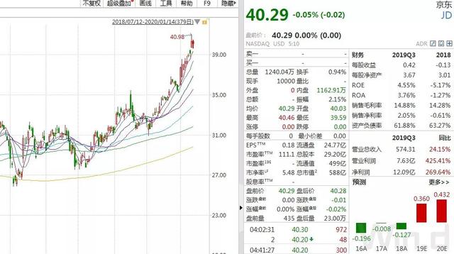 从股价上来看,截至2020年1月15日,京东的股价为每股40.29美元,2019年全年该股增长54.2%;拼多多目前股价为38.02美元,2019年全年该股增长41.1%;阿里在美股的股价目前为226.49美元,去年全年增长29.2%。