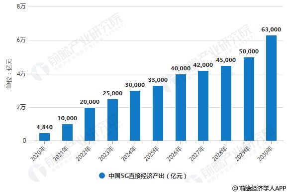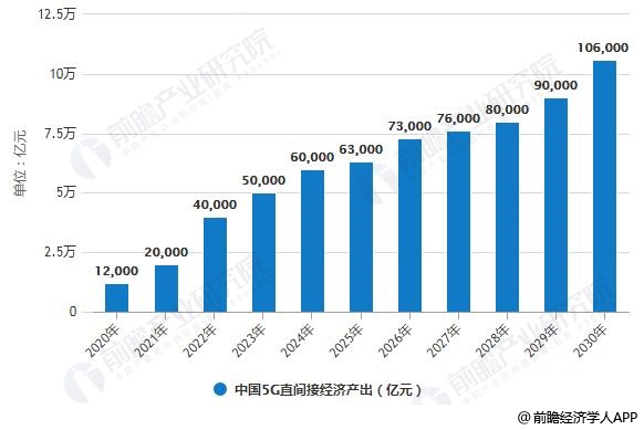 根据中国信通院《5G经济社会影响白皮书》预测,2030年,5G带动的直接产出和间接产出将分别达到6.3万亿和10.6万亿元。在直接产出方面,按照2020年5G正式商用算起,预计当年将带动约4840亿元的直接产出,2025年、2030年将分别增长到3.3万亿、6.3万亿元,十年间的年均复合增长率为29%。在间接产出方面,2020年、2025年、2030年,5G将分别带动1.2万亿、6.3万亿和10.6万亿元,年均复合增长率为24%。