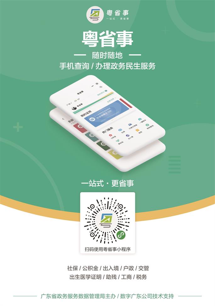 数字广东公司依照《广东“数字政府”改革建设方案》要求——建立一网通办的“互联网+政务服务”体系,在广东省政府的领导下,推出“粤省事”移动政务服务平台。这是广东“数字政府”首个改革建设成果,也是全国首个集成民生服务微信小程序。“粤省事”充分发挥互联网技术优势,让数据多跑路,群众少跑腿,办事更省事,以用户、流量、平台以及跨界等互联网思维为导向,积极探索移动在线政务服务的新模式。梳理与群众生活密切相关的政务服务事项,基于微信平台,通过业务流程再造、业务协同和数据共享,压缩办理时限,优化办事体验,不断推动“以部门为中心”向“以用户为中心”的服务模式转变。目前,在“粤省事”小程序上,民众可办理社保、公积金、出入境以及行驶证、驾驶证等近900项业务。截至2019年12月初,“粤省事”小程序实名用户累计2270万,公众号关注量累计583万, 67种电子证照,累计业务量3.9亿笔。每5个广东人就有一个在用“粤省事”。