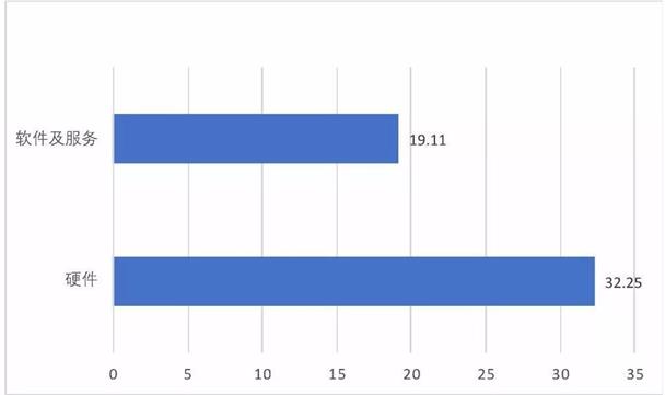 根据赛迪顾问的数据显示,2018年全球边缘计算市场呈现款速增长趋势,市场规模达到51.36亿美元,增速为57.71%。其中硬件产品市场规模达到32.25亿美元占比达62.79%;软件和服务占比达37.21%。