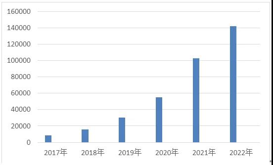 据IDC和中商产业研究院统计,2017年中国区块链的市场支出规模约为8300万美元,2018年的支出规模达1.6亿美元,总的来说市场规模还并不庞大,但近年来,中国区块链的市场一直在快速增长,中央领导人也在近期的在演讲中正式认可区块链的重要地位,这一导向也令区块链行业迅速迎来规模可观的增长。到2019年末,中国区块链市场支出规模将近3亿美元。到2022年末,市场支出规模预计达到14.2亿美元,2017–2022年的年均复合增长率高达76.3%。