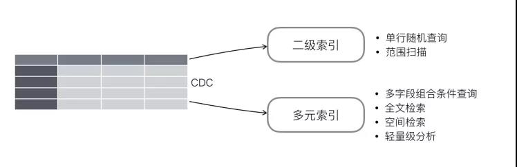 数据派生能力:一个完整的数据系统架构下,需要有多个存储组件并存。并且根据对查询和分析能力的不同要求,需要在数据派生体系下对辅存储进行动态扩展。所以对于结构化大数据存储来说,也需要有能扩展辅存储的派生能力,来扩展数据处理能力。而判断一个存储组件是否具备更好的数据派生能力,就看是否具备成熟的CDC技术。
