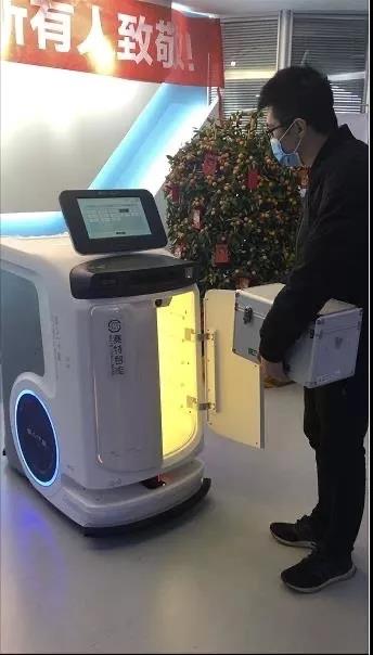 据实际运行效果测算,每台机器人可替代三名配送员的工作量,与此同时,由于机器人内部有自动消毒净化功能,外壳材质也是用抗腐蚀的医疗材料制成,只需用酒精喷洒或消毒巾擦拭十几秒即可完成消毒。