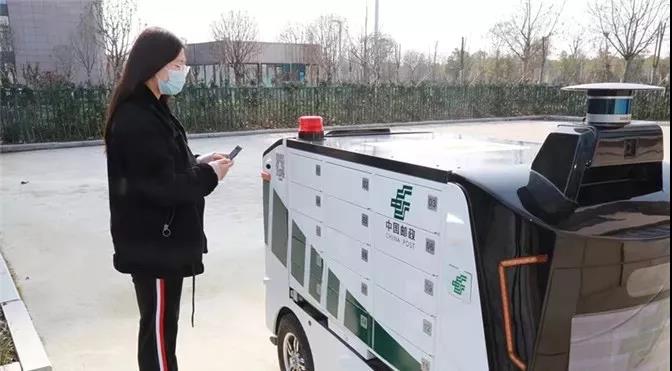 湖北省仙桃市邮政智能无人投递车承担起了仙桃市政府及直属单位区域内的投递任务。