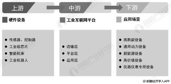 工业互联网的本质和核心是通过工业互联网平台把设备、生产线、工厂、供应商、产品和客户紧密地连接融合起来。从产业链来看,工业互联网上游主要是支持数据采集、存储、分析和开发的基础工业机器硬件设备;中游的工业互联网平台则面向制造业数字化、网络化、智能化需求,构建服务体系;下游则是各种应用场景,目前工业互联网广泛应用于石化、钢铁、电子信息、家电、服装、机械、汽车、装备、航空航天等垂直行业和领域。