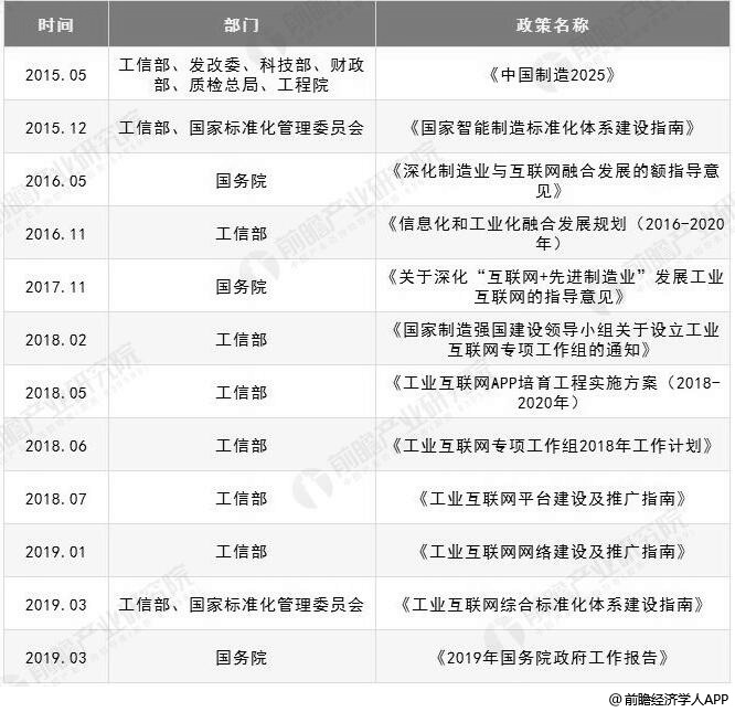 从2012年“工业互联网”概念首次提出,到2019年被写入《政府工作报告》,产业发展迅速,国家给予了很大的重视,并不断发布政策,完善产业政策体系。工信部发布了一系列的文件,针对工业互联网方向,包括网络、标准化、安全等,推动我国的工业互联网的发展。比如,2018年5月,工信部牵头成立了工业互联网专项工作组和战略咨询专家委员会,牵头印发了《工业互联网发展行动计划(2018-2020年)》;2019年1月,又印发《工业互联网网络建设及推广指南》的通知,为各地方和企业开展平台建设及推广提供参考。