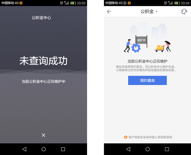 邦盛科技机器防御目前已经在全国多个公积金社保中心部署上线,客户包括省会城市、直辖市等用户量庞大的公积金社保中心。机器防御系统上线后,有效识别出大量网络爬虫,包括知名度靠前的一些第三方未授权APP。如图所示,在机器防御反爬虫拦截开关打开后,某APP显示公积金中心正在维护中。而通过公积金中心官方渠道仍可以正常查询。