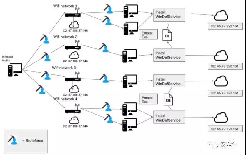 但是,据Binary Defense研究人员称,Emotet现在get到了一个更加危险的技能——可以“跳入”其他Wi-Fi网络并试图破坏其中的计算机。