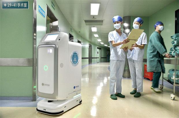 这台机器人能够精准、迅速地完成点对点的“药品”配送,可将药品从药房运送到护士站,药剂师只需要将药品放入相关入口,告诉机器人送去哪里就行。类似这样的无人化配送能够减少医护人员进入隔离区的频次,对医护人员起到了一定的保护效果。