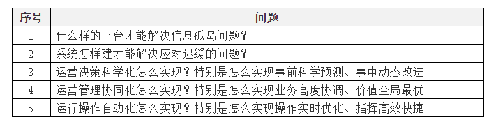 坚持与生产经营相结合、与专业化管理相结合、与系统优化相结合,提升各业务领域的感知、预测、优化分析和协同能力,用信息化全面提高生产经营管理水平,要“建成一个平台、解决两个问题、实现三大目标”:加强基础建设、建立全公司统一的集成平台,解决信息“孤岛”和应对迟缓两大问题,实现全公司信息共享、业务协同、过程控制,从而实现三大目标:运营决策科学化,通过深化信息集成和大数据分析等应用,做到事前科学预测、事中动态改进、事后全面分析;运营管理协同化,通过完善生产运营大指令和大优化机制,做到流程高度集成、业务高度协同、价值全局最优;运行操作自动化,通过提升生产自动化控制和指挥中心监控协调等水平,做到过程自动控制、操作实时优化、指挥高效快捷。(摘自领导讲话稿)