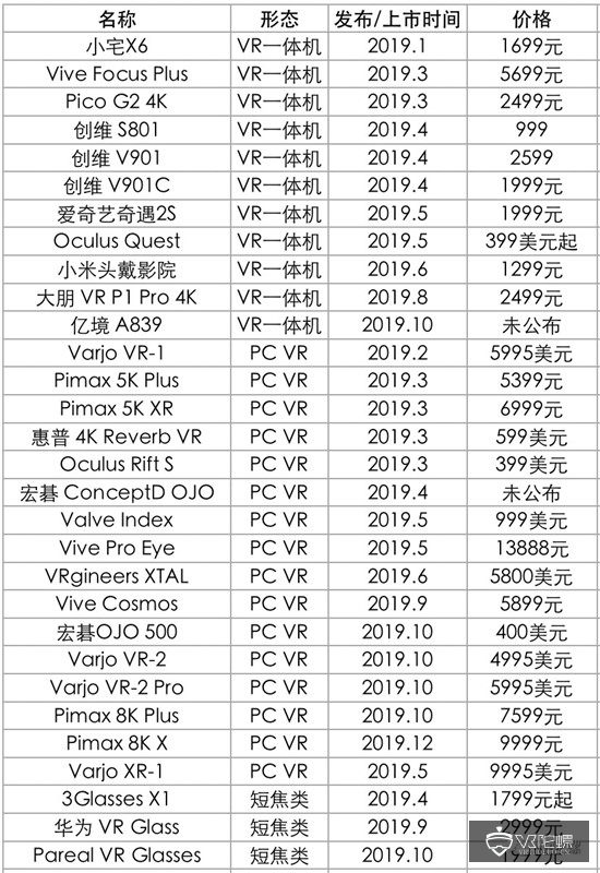 从2019年发布的移动端VR设备来看,大部分设备价格集中在2000-3000元人民币,设备降价趋势明显。