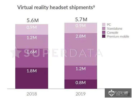 2019年,移动端VR设备迎来了高速增长,2020年在5G的助推下,有望进一步增长。