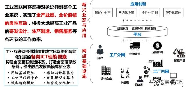 目前工业互联网有两大内涵,网络基础设施及新兴业态与应用。