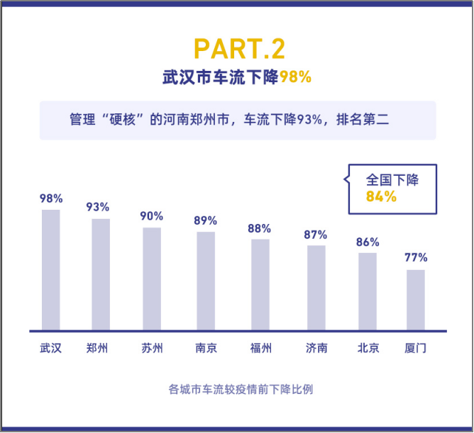 疫情区车流断崖式下滑,武汉市车流环比下降98%; 商场车流不足原来的12% ...