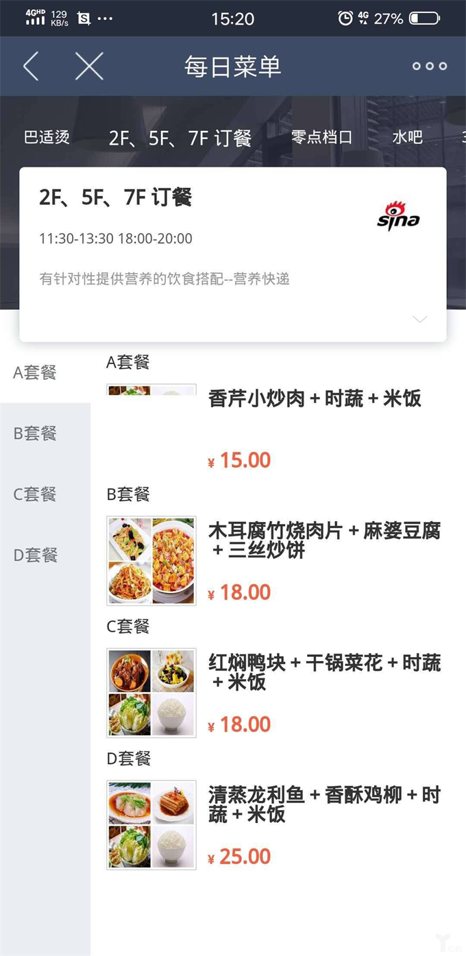 新浪员工的订餐页面