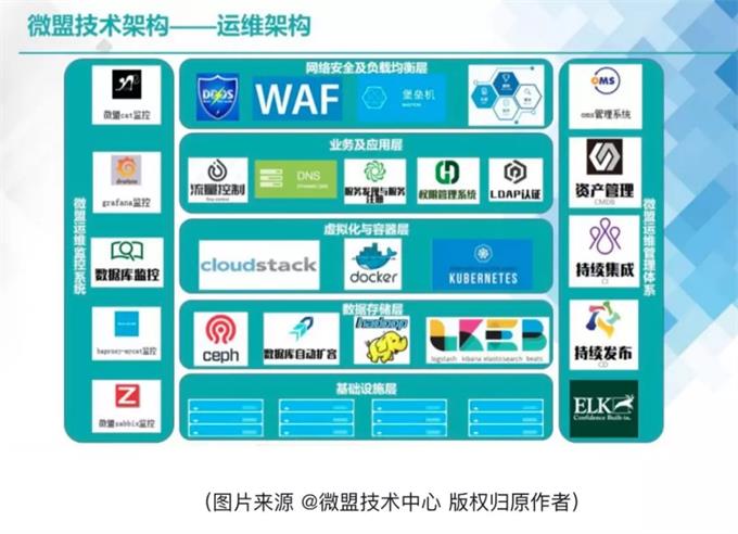 好了,接下来聊聊偏技术的话题。很显然,目前微盟的主要问题是在数据库的恢复上,由于官方并没有公布具体的技术细节,我在网上也只找到一张非常顶层的架构示意图,并没有能获得系统基础架构,尤其是数据库架构方面的详细信息,所以只能从个人经验的角度做一些可能的猜想,目的是想让你能够理解其中的技术复杂程度。