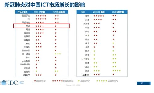 IDC预测,2020年第一季度IT整体市场下降约10%,这将是中国ICT市场首次出现季度10%的下降,存储市场预计将有15%左右的下降。