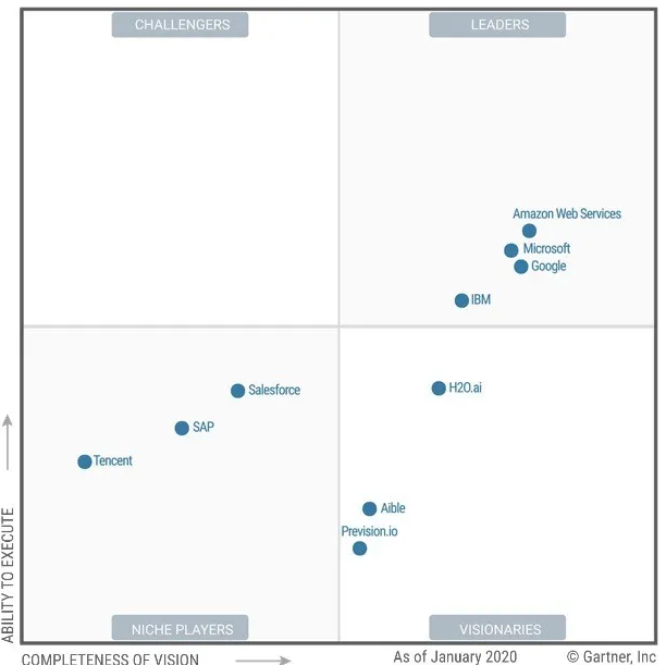 另外,来自权威研究机构Gartner发布《Magic Quadrant for Cloud AI Developer Services》研究报告显示AWS、微软、谷歌、IBM位列领导者象限的厂商,而AWS排名第一,领跑全球。报告指出,AWS拥有非常强大产品组合,在市场有很高的知名度,AWS为开发人员提供的服务可以满足那些没有机器学习(ML)技能和寻求高级功能的人的需求。