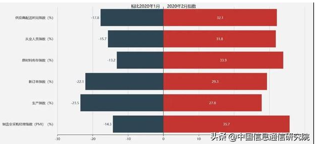 根据最新发布的数据,受疫情影响,2020年2月份我国制造业采购经理指数(PMI)为35.7%,比上月下降14.3个百分点。此外: