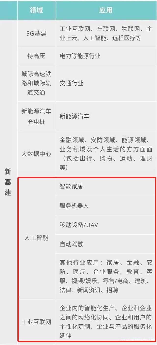 据央视报道,“新基建”指发力于科技端的基础设施建设,主要包括七大领域:5G基站建设、特高压输变电网络建设、城际高速铁路和城际轨道交通、新能源汽车充电桩、大数据中心、人工智能和工业互联网。