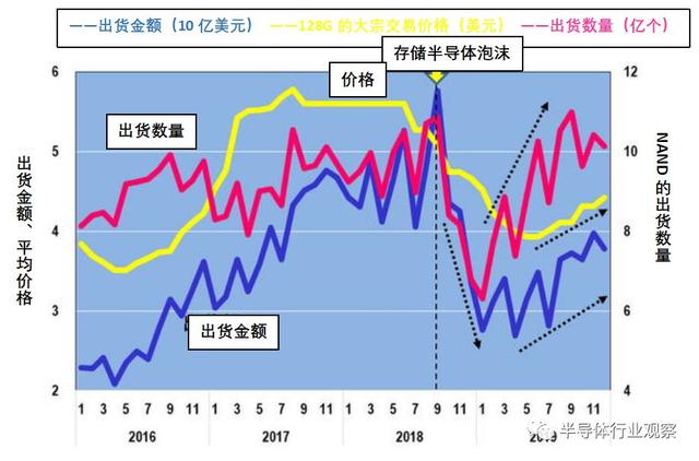 下面我们看看2016年1月-2019年12月期间的NAND的月度出货金额、出货数量、128G的大宗交易价格的推移(图4)。由于128多被当作为指标来使用,因此本文也采用128G。
