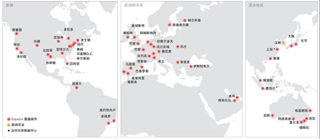 国际数据中心龙头Equinix、Digital Realty等数据中心机房均主要位于发达城市。Equinix目前在全球范围内拥有约200个数据中心,遍布美洲、亚太、欧洲、中东、非洲,大部分位于全球各区域中心城市,如北美地区主要分布于亚特兰大、芝加哥、纽约、硅谷、华盛顿,欧洲主要分布于巴黎、都柏林、伦敦,亚太地区主要分布于悉尼、上海、香港、东京等城市。