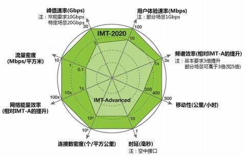 资料来源:中国信通院:《5G 经济社会影响白皮书》、ITU-R M.2083-0(2015)建议书