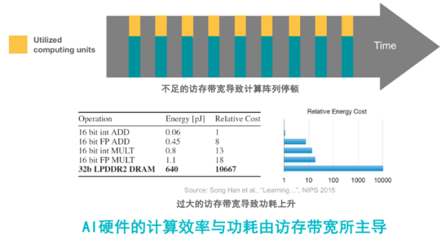 图4:AI硬件的计算效率与功耗由访存带宽所主导(图片来源:深鉴科技)