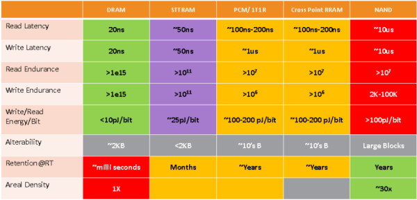 图5:各类不同存储器件的性能对比(图片来源:美光科技)