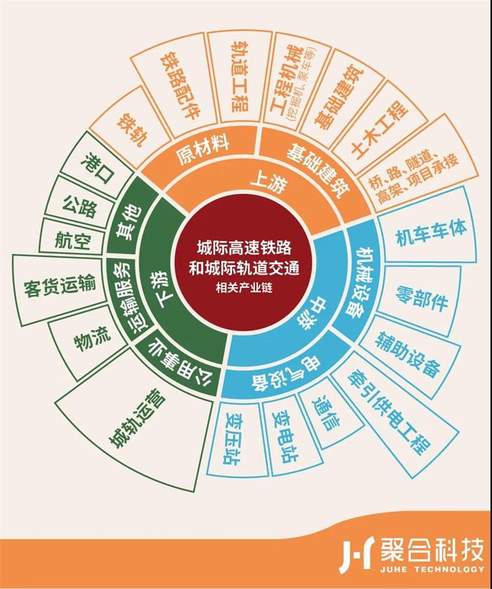 就产业方向而言,城际高速铁路和城际轨道交通的产业链条也非常长,从原材料、机械到电气设备再到公用事业和运输服务,它将在推动整个社会发展和交通数字化、智能化方面起到基础性作用。
