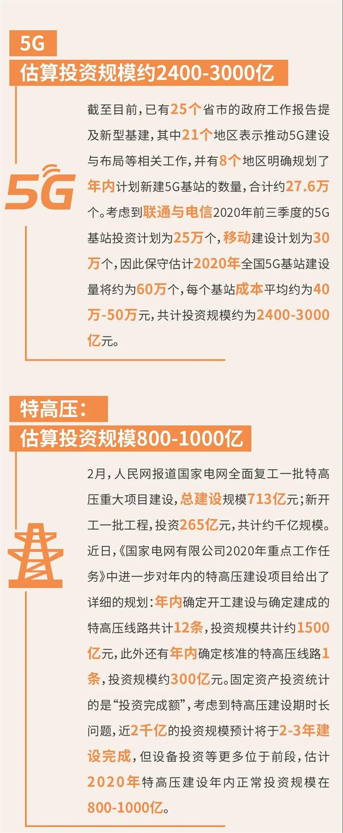 既然“新基建”是2020年基建投资中的“C位”项目,那么它的规模有多大呢?这个问题目前还没有明确答案,不过根据以往的信息,我们其实可以预估出一个大概数字: