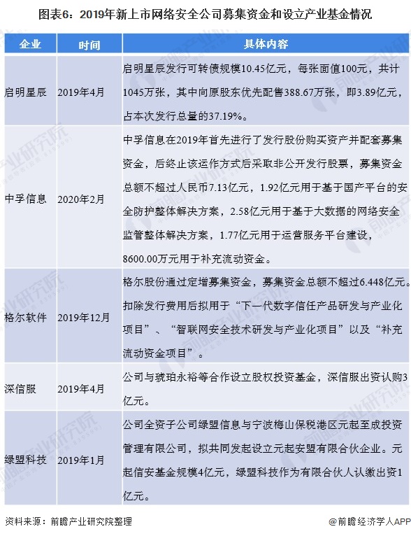 部分上市公司通过资本市场募集资金进行产品升级和产业布局,其中启明星辰发行了超过10亿元的可转债进行募资;中孚信息和格尔软件均发布了非公开发行股票预案,目前仍在审批中。