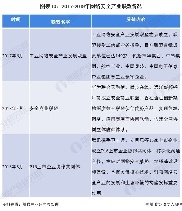 近年来,重点领域和新兴领域安全产业联盟的相继成立也推动了我国网络安全的投资热潮。2017年6月,工业网络安全产业发展联盟在京成立; 2018年3月,华为联合天融信、微步在线、远江盛邦等厂商成立安全商业联盟;2018年8月,腾讯携手卫士通、立思辰等15家上市企业,成立P16上市企业协作共同体等。